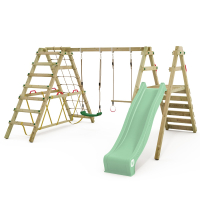 Ljuljačka od drva Wickey Smart Cliff pravi je multitalent kad je u pitanju zabava u ljuljanju. Velikim se zamahom za malene i njihove prijatelje podiže u zrak na stabilnoj dvostrukoj ljuljački. Najhrabriji istraživači penju se čak na visoko brdo pomoću ljesti i mreže za penjanje. Kakav prizor!